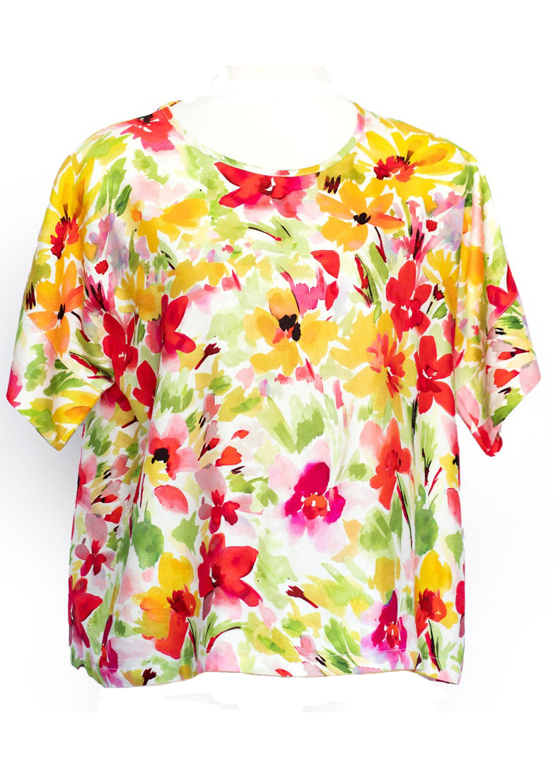 Yellow Red Floral Print (75% Rayon/25% Linen)