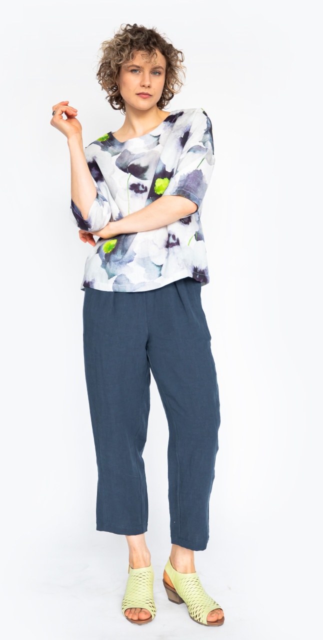 This breezy summer pant combines casual charm with thoughtful design. Seam details accent the front and back. Soft front pleats and